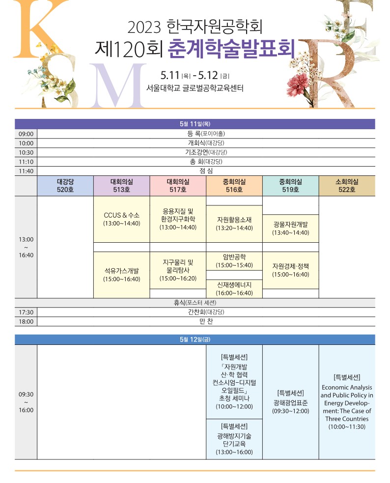 [춘계] 2023 한국자원공학회 제120회 춘계학술발표회 프로그램 일정 안내