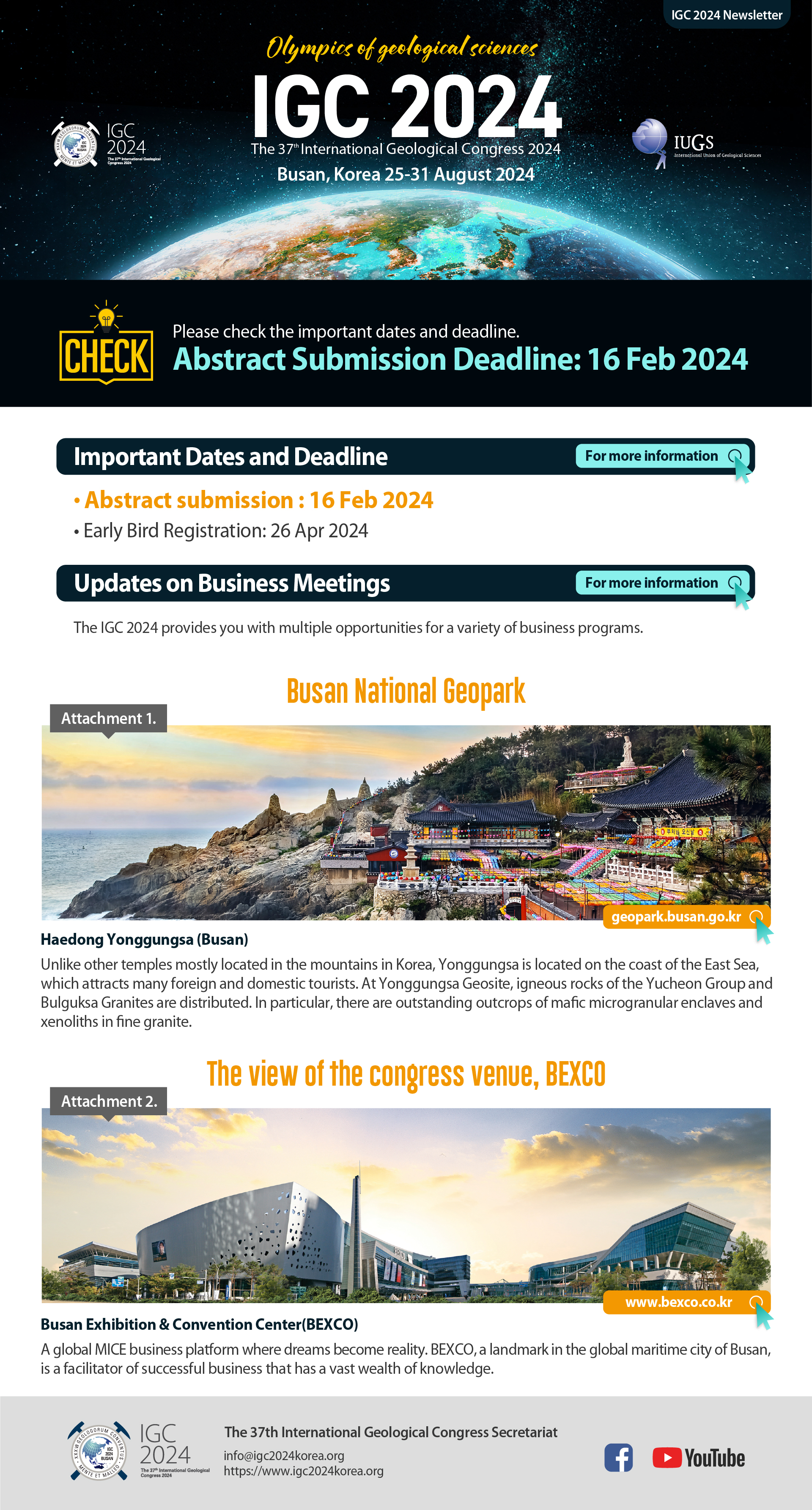 [안내] 2024 부산 세계지질과학총회(IGC 2024) 등록 및 초록 접수